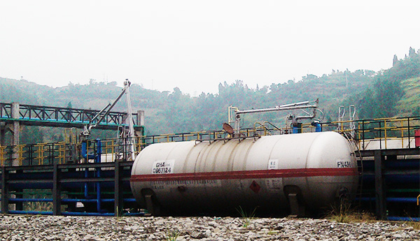 重慶白濤能通建設(shè)開發(fā)有限公司(化工鶴管潛液泵為"苯"罐火車卸車的現(xiàn)場照片)