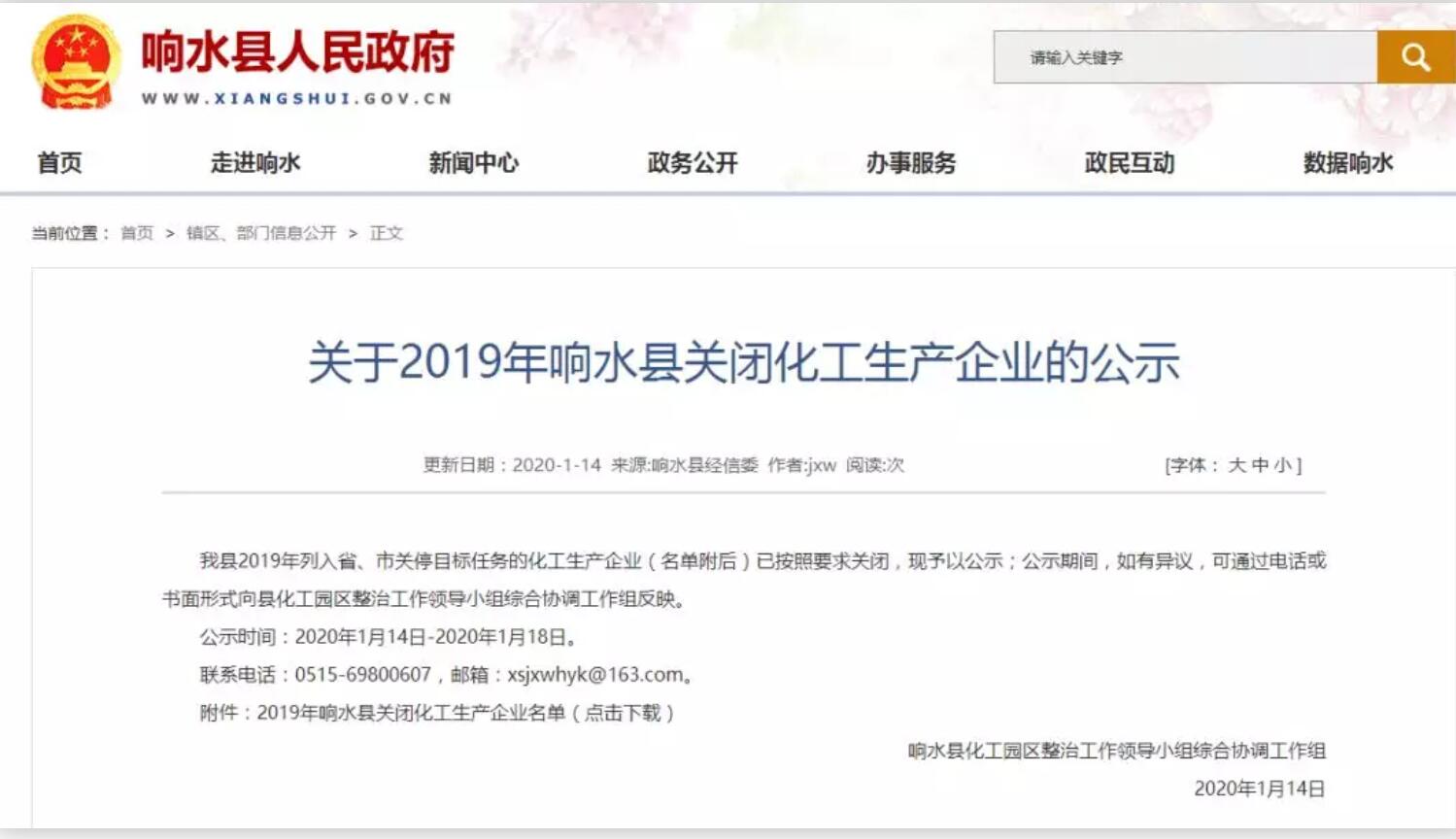 2019年響水縣關閉化工生產(chǎn)企業(yè)名單