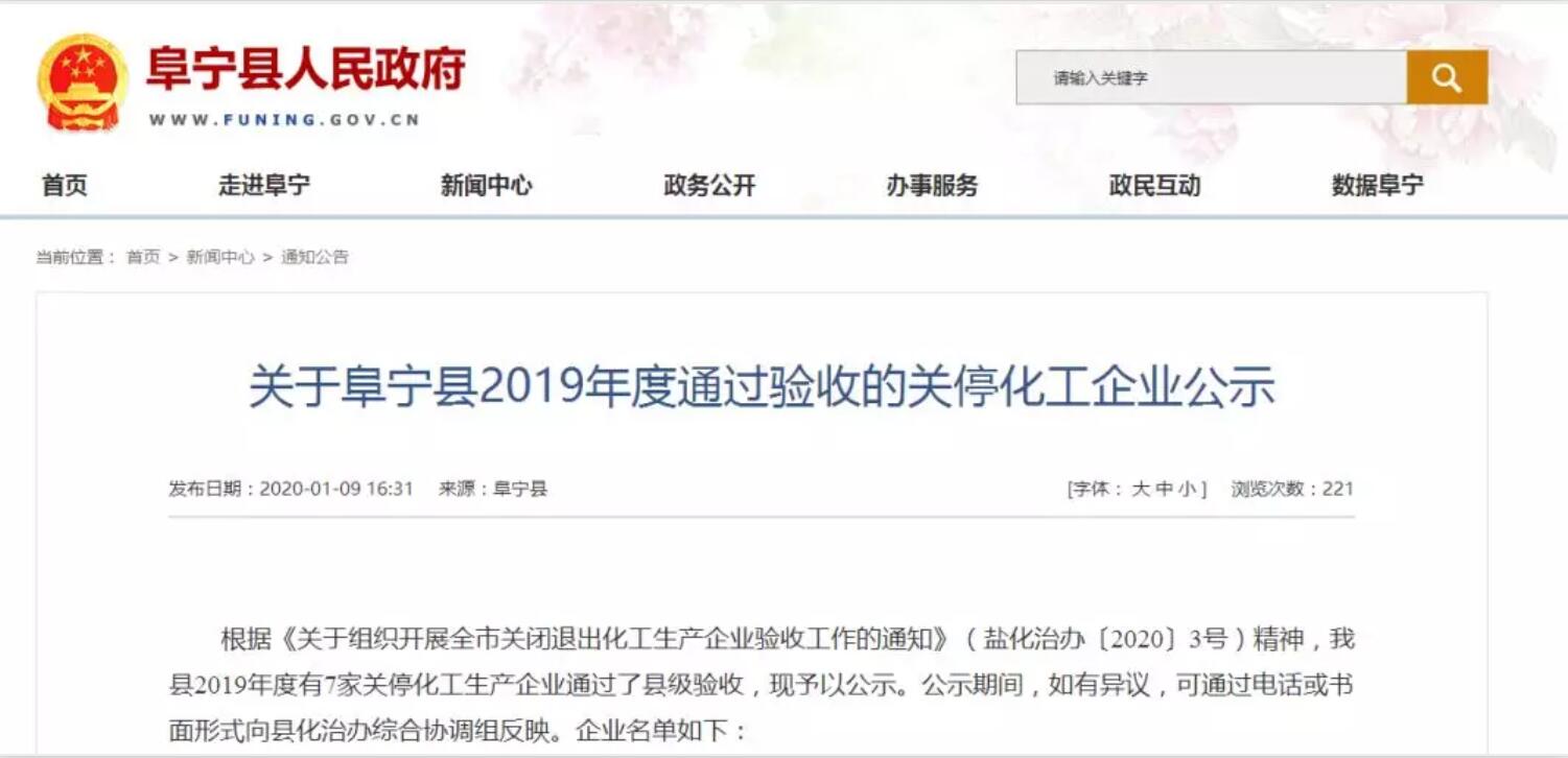 2019年阜寧縣關閉化工生產(chǎn)企業(yè)名單