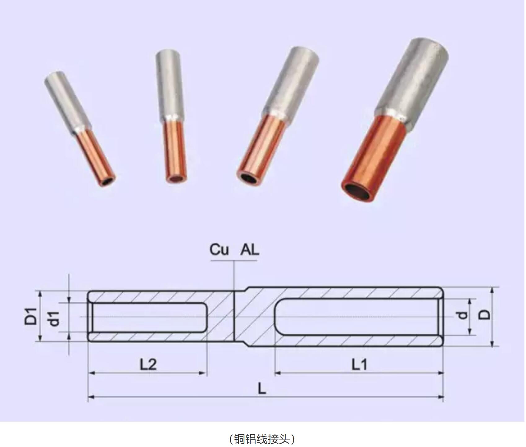 當需要連接時,一般采用銅鋁過渡線夾,銅鋁過渡接頭,銅線搪錫或鋁線搪錫后直接連接。