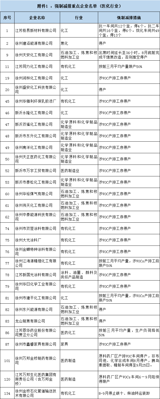 徐州:60多家化工企業(yè)被列入強制減排或強化管控企業(yè)名單