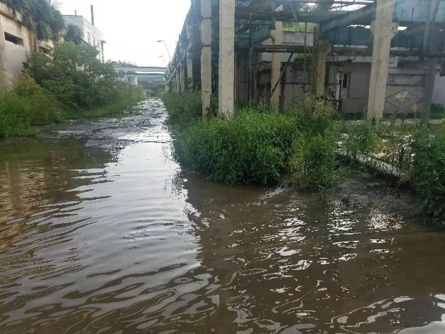 雨后廠區(qū)內(nèi)積水嚴(yán)重。圖片來源/生態(tài)環(huán)境部