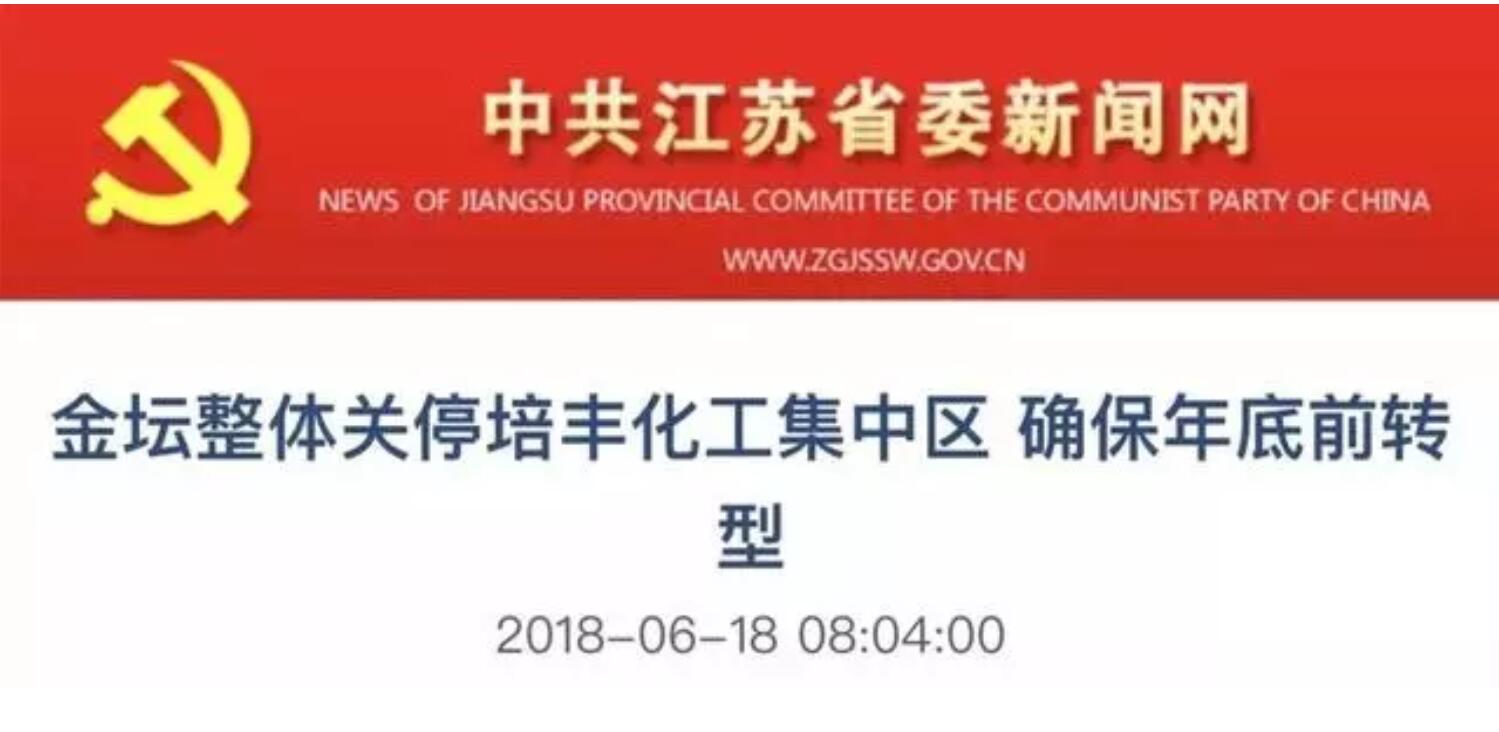 據(jù)當(dāng)?shù)毓俜矫襟w2018年報(bào)道顯示,常州市金壇區(qū)于2016年8月1日收到中央環(huán)境保護(hù)督察組交辦的環(huán)境信訪事項(xiàng)后,持續(xù)對園區(qū)企業(yè)進(jìn)行了提標(biāo)改造。作為2016年中央環(huán)保督察交辦的38個化工園區(qū)問題之一,因未能滿足500米衛(wèi)生防護(hù)距離內(nèi)居民全部拆遷的要求,區(qū)委、區(qū)政府決定從根源上消除環(huán)境隱患,結(jié)合將來的區(qū)域發(fā)展規(guī)劃,取消培豐化工集中區(qū)產(chǎn)業(yè)定位,按化工企業(yè)整治的要求,對所有企業(yè)實(shí)行關(guān)停。