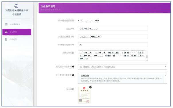 答:1.商品基本信息; 2.企業(yè)近3年進(jìn)口情況; 3.加征關(guān)稅對(duì)企業(yè)的影響; 4.申請(qǐng)排除的理由;(每項(xiàng)下面會(huì)有具體分項(xiàng))。