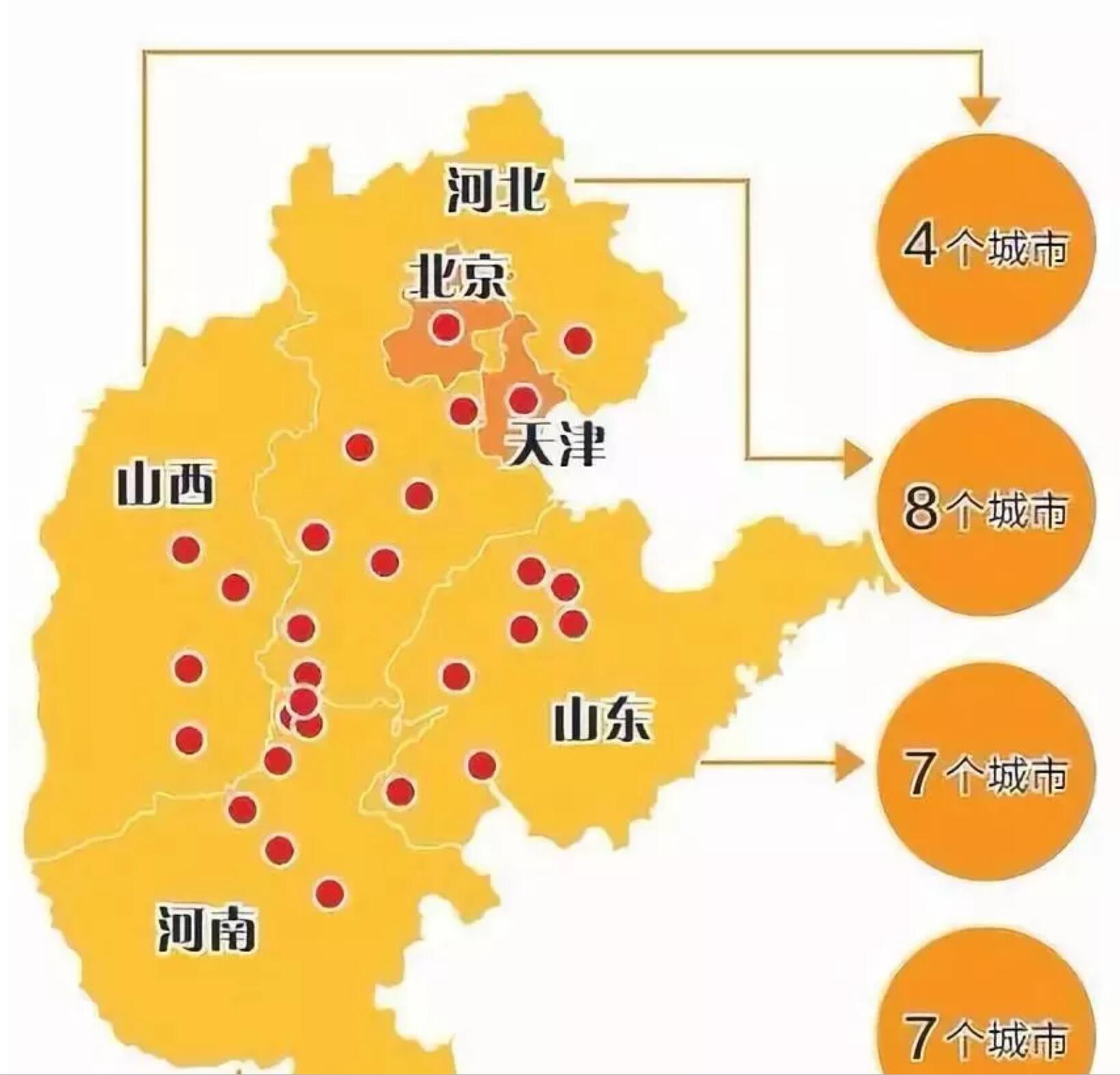 北京,天津,石家莊、唐山、邯鄲、邢臺、保定、滄州、廊坊、衡水市,山西省太原、陽泉、長治、晉城市,山東省濟南、淄博、濟寧、德州、聊城、濱州、菏澤市,鄭州、開封、安陽、鶴壁、新鄉(xiāng)、焦作、濮陽,簡稱“2+26”城市。
